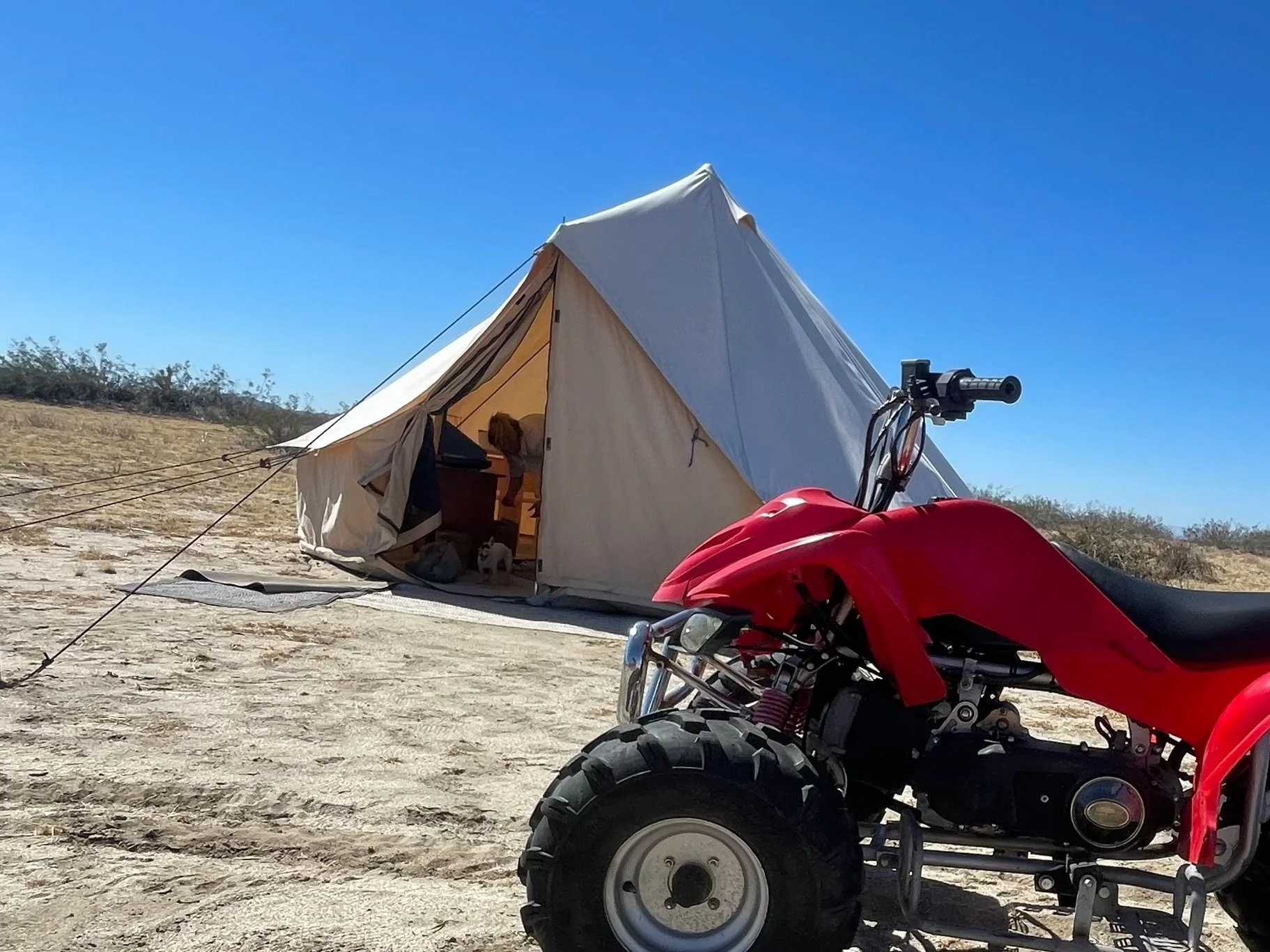Off‑grid desert camping on a 10‑acre property in Lake Los Angeles with RV/tent sites and glamping bell tents (yurts).